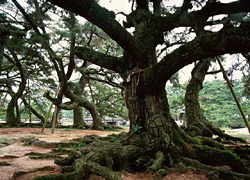その老松は砂地のために根上りとなり、風雪に耐えた歴史をその根に秘めて、枝々はいまも昔に変わらぬ緑をたたえている。