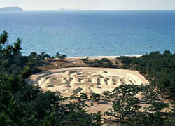 山頂象が鼻展望台から見る周囲345メートルの砂型寛永通宝(一文銭)は圧巻です。